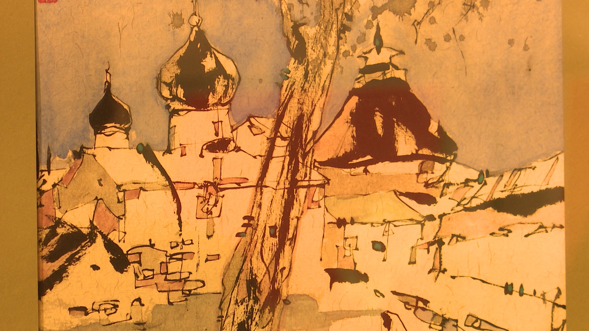 "Наверное, это первый случай, когда псковские храмы, башни и пейзажи изображены в стиле гохуа, то есть традиционной китайской живописи. Она всегда узнаваема: не такие яркие цвета, будто нечеткие контуры. Поэтому видеть Псков на полотнах китайских художников особенно непривычно", - Дина Перевозчикова, корреспондент.
