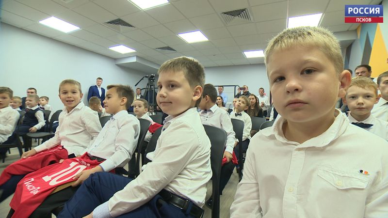 Торжественная церемония перехода ребят из школы «Юниор» в школу «Спартак Юниор» прошла в Пскове. Семилетние футболисты подписали свои первые контракты и получили форму.