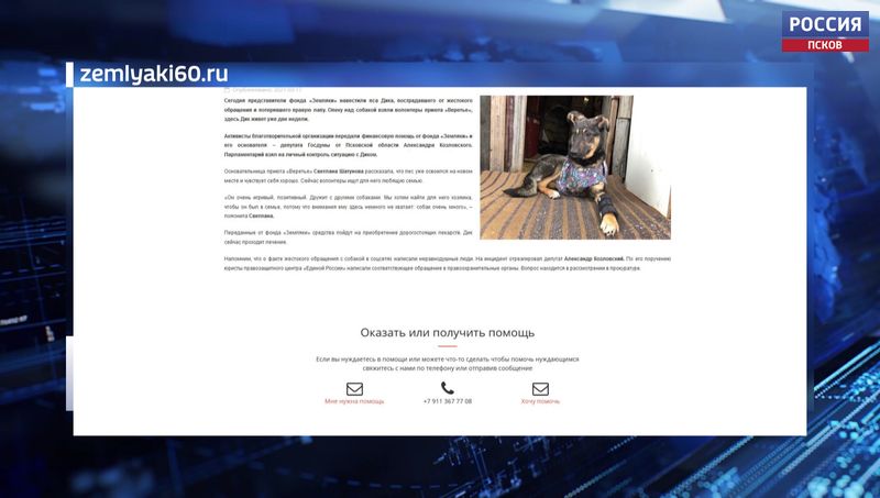 Фонд «Земляки» Александра Козловского помог псу Дику, который пострадал от жестокого обращения. Опеку над собакой взяли волонтёры приюта «Веретье», здесь Дик живет уже две недели. Активисты благотворительной организации передали деньги на лекарства. По словам зоозащитников, пёс, несмотря на травму - ранее он лишился правой лапы, - игривый и позитивный, освоился на новом месте и чувствует себя хорошо.