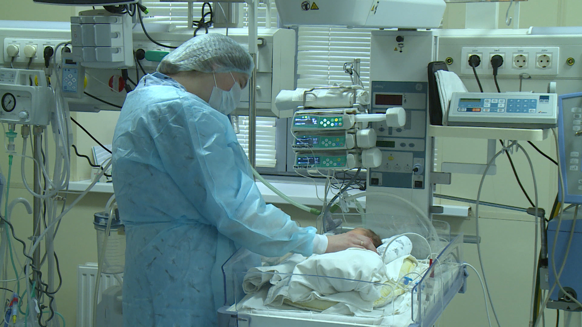 "Детки, которые находятся у нас в отделении, они находятся в условиях, приближенных к внутриутробному существованию. Темно, влажно, тепло и тихо. Оптимальные условия для созревания ребенка без дополнительных травм", - Юрий Гром, заведующий отделением реанимации и интенсивной терапии для новорожденных.