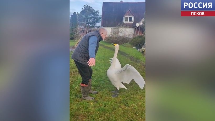 Новое видео со всеобщим любимцем – лебедем по кличке Мартин выложил хозяин "Птичьего дворика" Геннадий Мельниченко. На нем пернатый активно машет крыльями и что-то говорит на своем языке. Судя по всему, птица показывает, что она готова улететь в дальние края. Причем так уже было. Когда Мартина из пруда выгнали выдры, он улетел и поселился в пруду Крыпецкого монастыря. Позже его вернули и теперь лебедь ни на шаг не отходит от Геннадия Александровича.