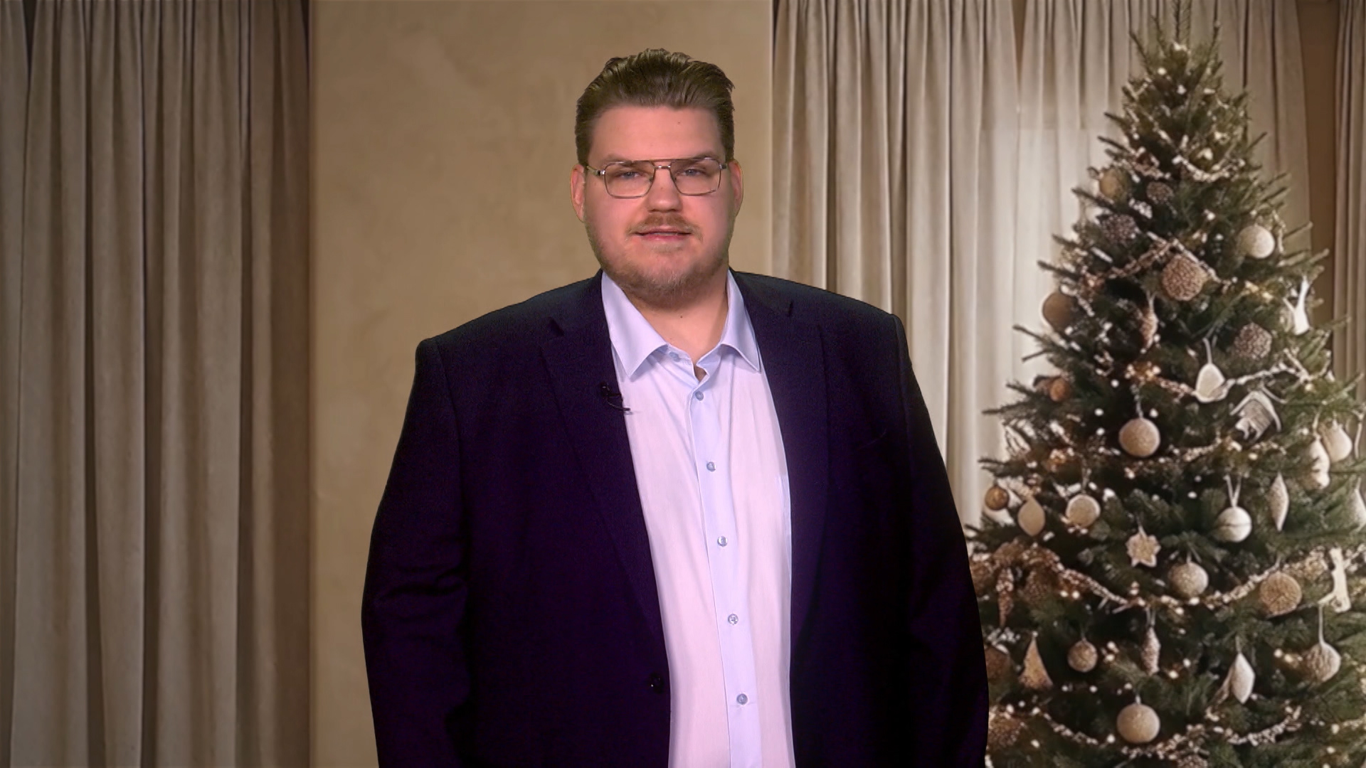"Дорогие псковичи, друзья, и гости нашего города! От коллектива предприятия Псковский хлебокомбинат, разрешите поздравить вас с наступающим Новым годом и светлым Рождеством! Приближается самый семейный и любимый праздник — Новый год. Время, когда в каждом доме пахнет елкой, мандаринами и, конечно, свежим хлебом.