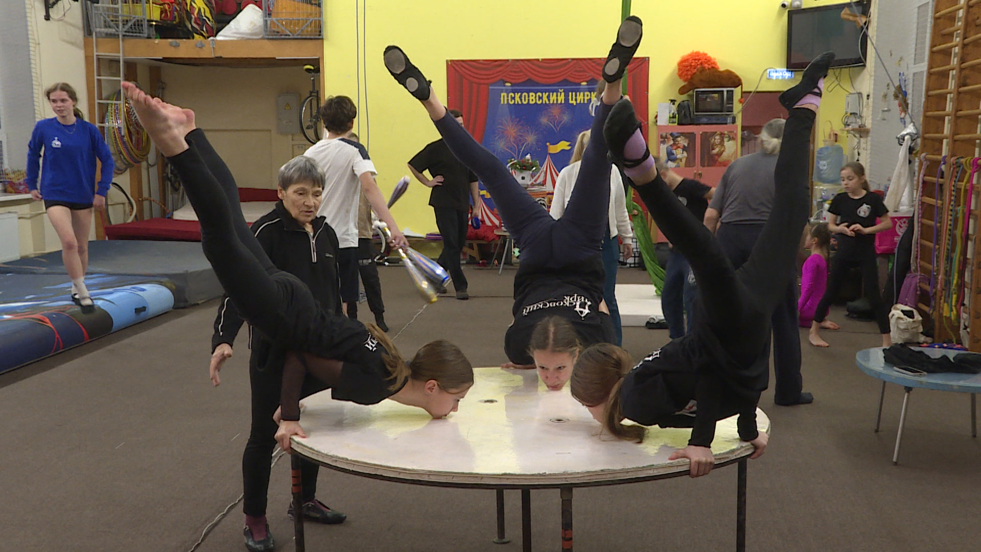 - То есть плечи не работают, бедра не работают. Работают только колена. Вот самое главное. Но я-то 30 лет так стояла, мне-то легко. Сейчас будем на вас испытывать это все дело. Ирина Михайлова – руководитель Псковского цирка. Но даже под ее началом первую попытку я смазал.