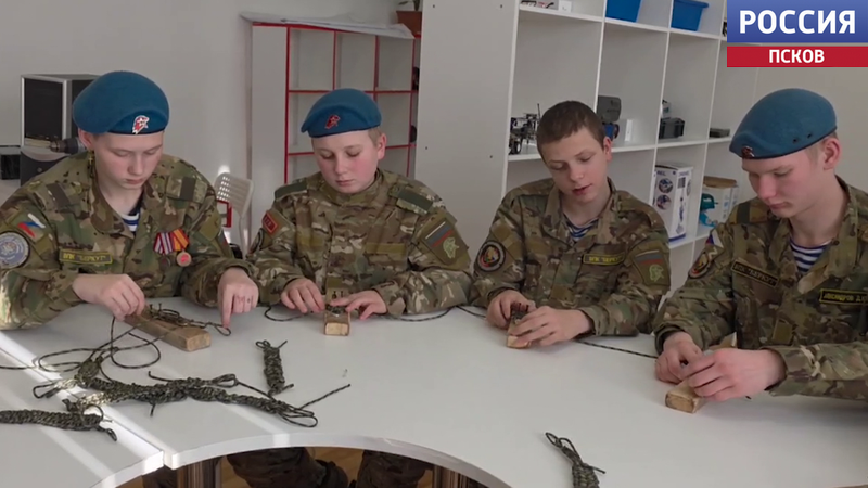 Курсанты "Беркута" из Опочки сплели для бойцов 76-й дивизии браслеты из паракорда