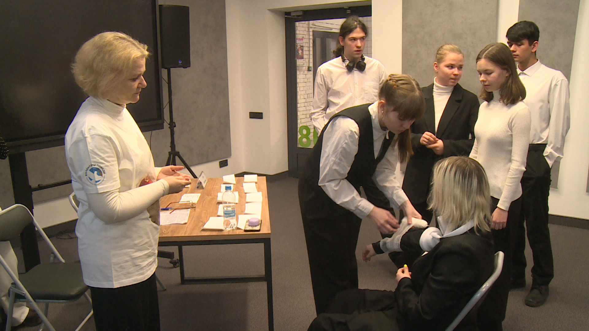 "Одна из станций у нас находится на втором этаже, которая их познакомит с летчиком, затем они знакомятся с пионером, который спас одну из точек при защите Сталинграда, с медицинской помощью они также познакомятся, с одной из медсестер. И затем они познакомятся со звуками войны", - Юлия Бакилева, руководитель Центра подготовки волонтеров Победы.