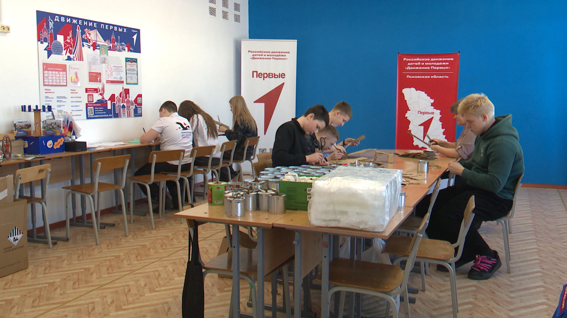 "Буквально несколько минут назад у ребят завершились уроки. И вместо того, чтобы пойти домой или, к примеру, отправиться гулять, они спешат сюда, в муниципальный центр Движения Первых, чтобы помочь бойцам, которые сейчас находятся в зоне проведения СВО", - Мария Саханенок, корреспондент.