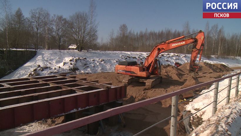 Для ремонта моста через Кухву в Пыталовском округе возводят временную переправу