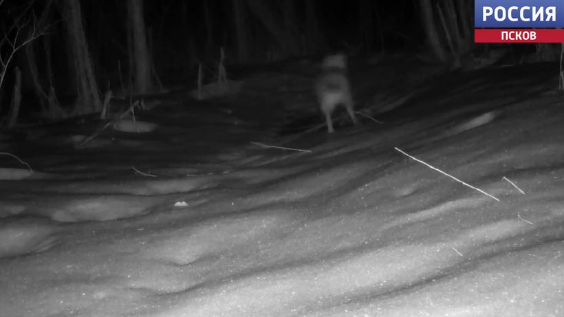 Фотоловушка запечатлела момент охоты волка в Псковской области