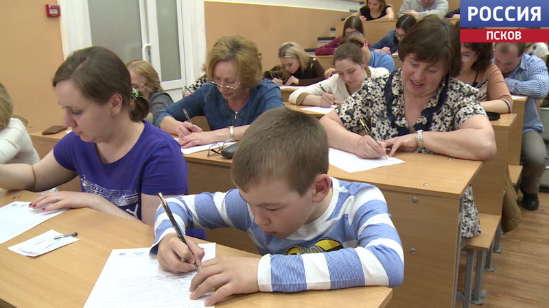По традиции этим занимается молодежная организация "Вечевой Орден". Благодаря их усилиям в Пскове написать диктант и проверить свои знания русского языка смогли больше 25 тысяч человек.