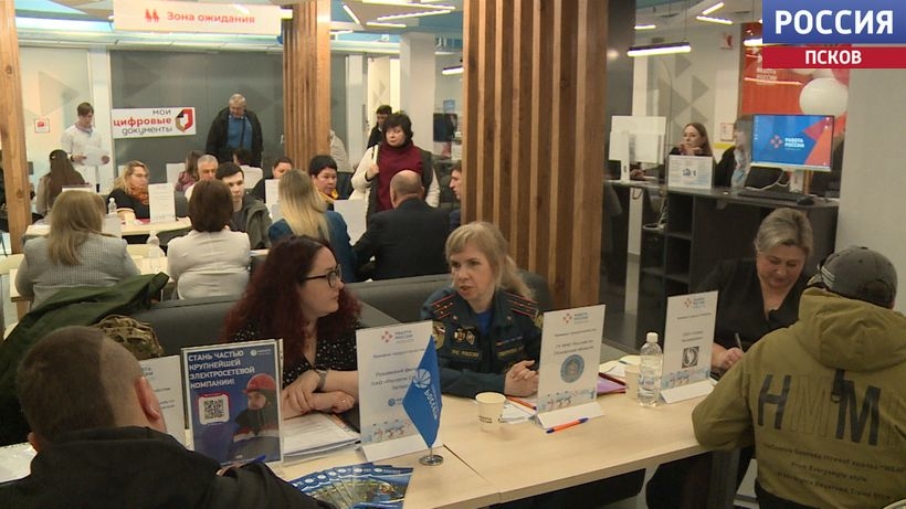 Для всех жителей страны, начиная с 14-летнего возраста, найти профессию по душе помогают ярмарки трудоустройств. "Работа России. Время возможностей" - ярмарка, которая проходит по всей России. В Пскове она сегодня развернулась сразу в двух местах - в Кадровом центре и в Доме молодежи.