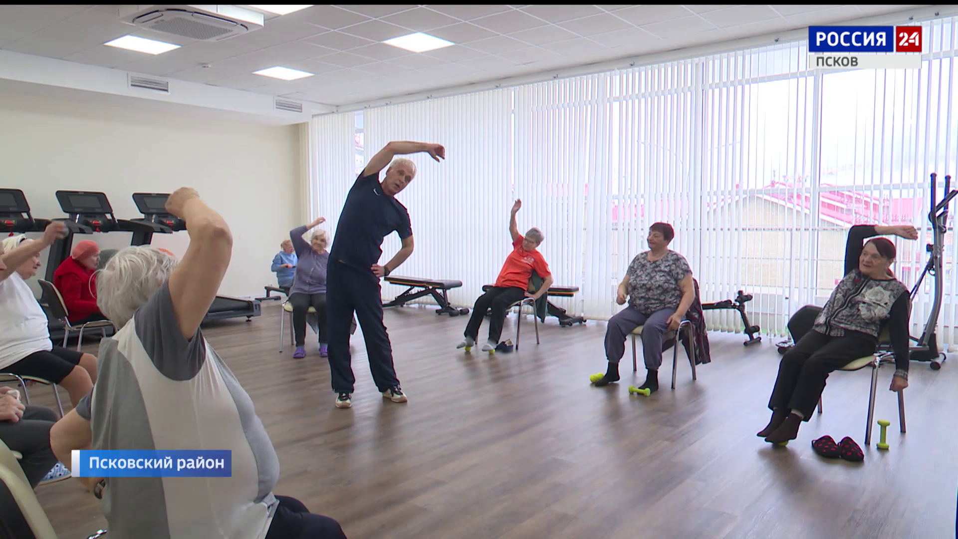 "Обычные упражнения на все группы мышц. Потому что особенно те, кто маломобильные, нужно все группы мышц прокачать, чтобы у них по крайней мере кровь побежала, я уж не говорю про мускулатуру: кровь побежала, лимфа начнет уходить — оздоравливающее это все. Ну и по индивидуальным показаниям: я вижу глазами, у кого что плохо", — Александр Луговцев, инструктор по адаптивной физической культуре Псковского социального городка.