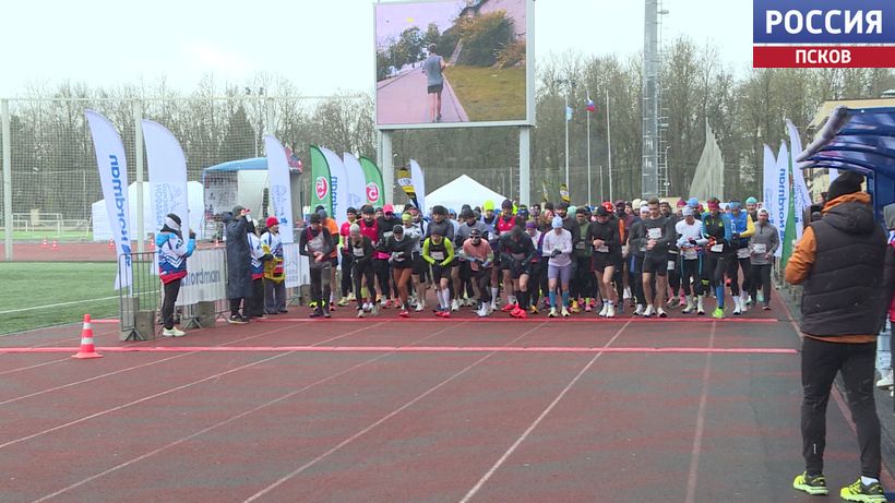 1,3 тысячи бегунов, снег и предложение на финише: как прошел "Псковский марафон-2026"